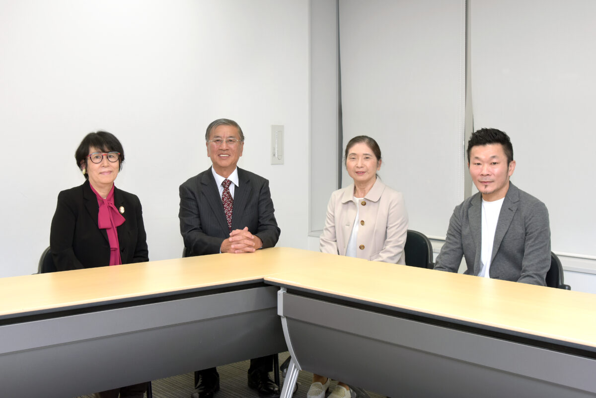 左から加藤葉子さん、鈴木市長、後藤君代さん、桑原仁さん。藤沢商工会館ミナパークにて。